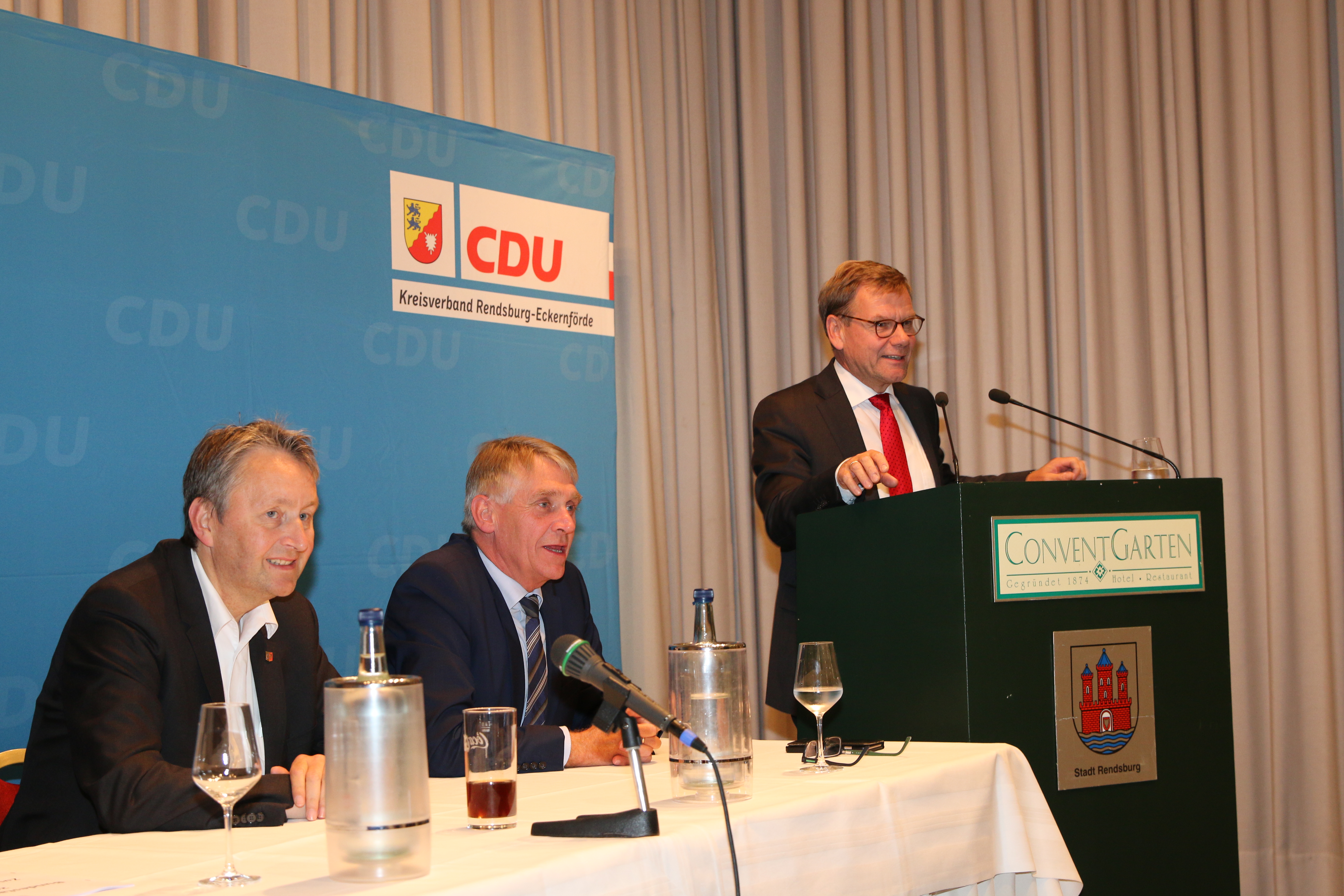 Einen Tag nach der Bundestagswahl fand im Rendsburger ConventGarten die Wahlnachlese der CDU Rendsburg-Eckernförde statt. Dabei sprach der Kreisvorsitzende Dr. Johann Wadephul, MdB, den anwesenden Gästen seinen Dank für ihre Mithilfe im Wahlkampf aus: „Ob beim Tür-zu-Tür-Wahlkampf, bei Ständen der CDU auf der Norla oder auf dem Rendsburger Herbst oder beim Plakatieren – die Mitglieder der Ortsverbände haben einen außerordentlich guten und engagierten Wahlkampf für mich gemacht, wofür ich mich herzlich bei Ihnen und Euch bedanken möchte.“ Besonders positiv stimmte Wadephul, dass die CDU erstmals in der Geschichte des Kreisverbandes bei einer Bundestagswahl in allen Kommunen, auch in traditionellen SPD-Hochburgen, die Mehrheit der abgegebenen gültigen Erststimmen holen konnte. „Daher können wir als Kreisverband zu Recht von einem historisch guten Ergebnis sprechen, das in erster Linie das Verdienst unserer freiwilligen und hauptamtlichen Helferinnen und Helfer ist.“