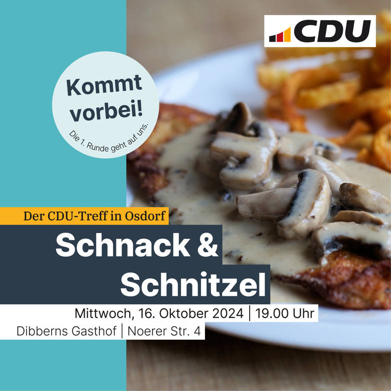 Gerne wollen wir diesen Abend nutzen, uns über aktuelle Themen der Gemeinde-, aber auch der „großen“ Politik auf anderen Ebenen auszutauschen. Die erste Getränkerunde geht traditionell auf die CDU, ein mögliches Schnitzel und ein zweites Bier übernimmt jeder selbst.